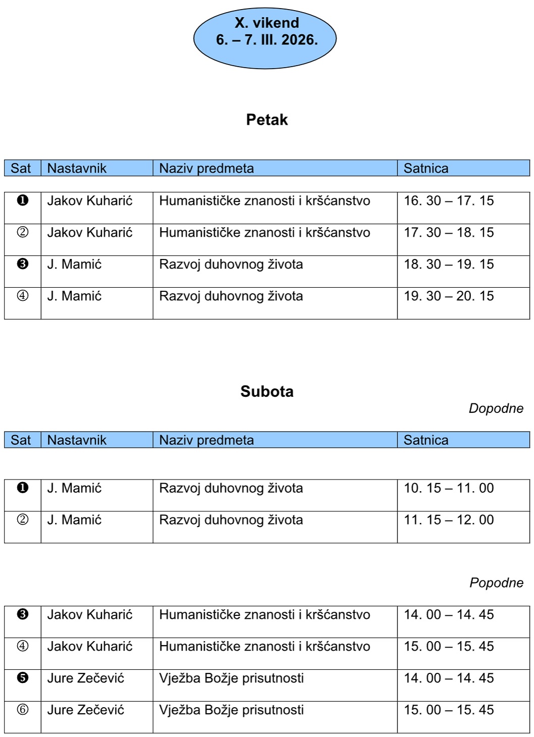 Nastavni vikend 6. i 7. veljače 2026.
