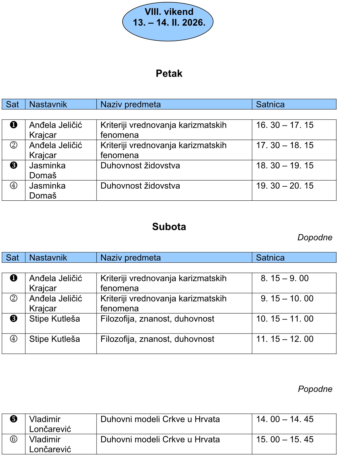 Nastavni vikend 13. i 14. veljače 2026.