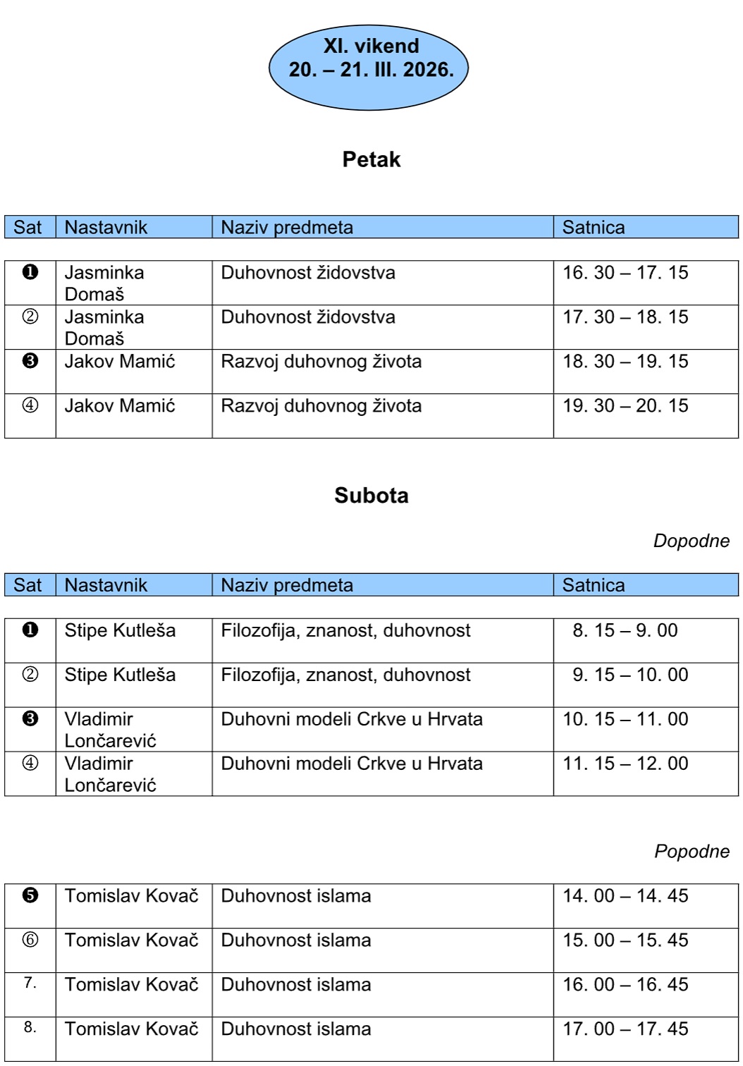 Nastavni vikend 20. i 21. veljače 2026.